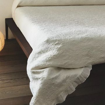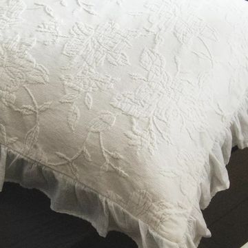 Capa de almofada em Jacquard com bordado. (cor crua)